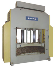 該機在吸收國外技術 的基礎上,自行設計制造專用于生產彎曲型膠合板。采用彎曲鉆機熱壓板加熱溫度均勻,所生產的膠合板厚度一致,熱壓板表面包覆不銹鋼板后,產品光潔度好。整機結構合理,操作簡單,質量穩定。